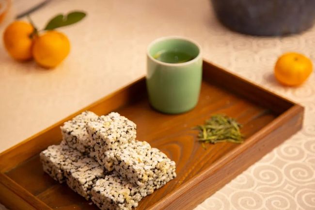 待客解茶吃什么,怎可少得冻米糖。每年中秋一过,农村家家户户把糯米饭凉干,炒成爆花米,用米糖拌粘,切成小块。洁白晶亮,松脆爽口,落口消溶,无渣无屑。