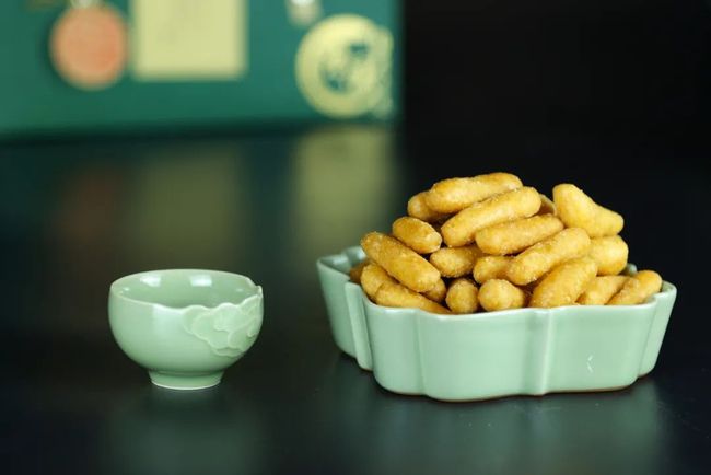 麻花长久活跃于慈溪人的味蕾之上,是招待亲友的绝佳美味。而诚意手作礼盒内的麻花选自本土麻花界的天花板—— 彭桥麻花。刚出油锅的麻花金黄剔透,吃起来嘎嘣脆响,焦酥感十足。那一根根油而不腻、香脆可口的老底子美食,绝对能排上慈溪糕点”必吃榜“前三。