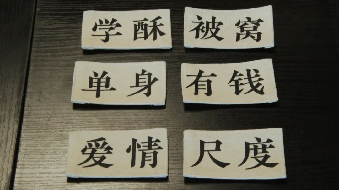 正面为“XX”需要“XX”拼贴DIY,拼贴的地方我们做了手工锁边、多种文字版本的魔术贴(红色、黑色都有)——