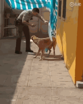 有人报警称有狗狗被困住了,警察蜀黍赶到后发现,这只狗被帆布卡住了身体无法挣脱,而主人并不在家...