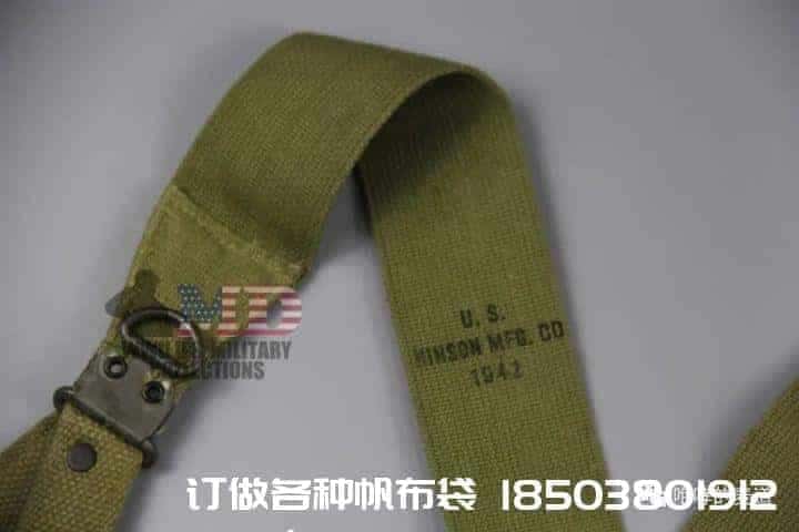 1941年生产的装具使用了一部分一战剩余物资,可以从帆布的厚度上看出来,总体来讲一战时期的帆布略厚于二战时期,看起来更厚重,颜色比42手提帆布袋年生产的要深一些,更偏黄。