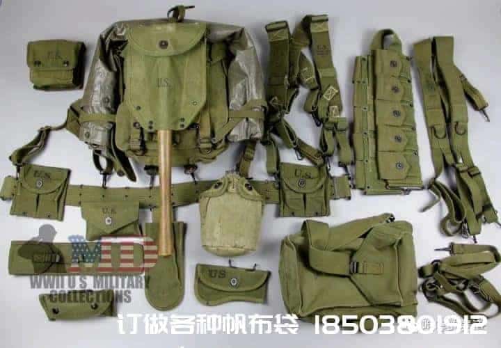 总体来讲二战时美军帆布类装备是传承于一战时期,在二战时期军方对于不同兵种开发了更多适用装备和通用装备,但是这些装备在大体上颜色都比较接近,那么我们从外观上如何区分呢,请看下图。
