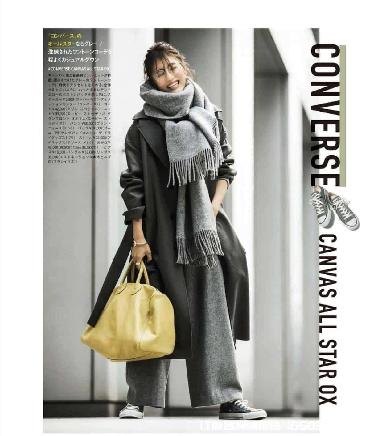 像灰色的帆布鞋,它可以用来配合同色大衣,而与此同时,阔腿裤的颜色选用也与它们保持了相似性,可以演绎出更加帆布手提袋简约的造型,慵懒中又不失气场。不过,这样的搭配模式确实会因为颜色带来的限制性而导致色系不够丰富,可以手提一款亮色的包包。