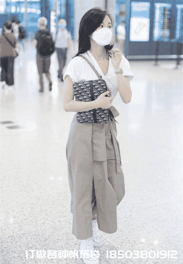 王子文身穿V领款T恤,V领显得王子文更加消瘦娇小,惹人怜惜的同帆布袋厂家电话/微信:15838231350时也带着一丝素雅端庄。袖子的翻口设计为整体纯白色无印花的白T增添了一丝设计感,让整件衣服没有那么单调枯燥,简洁大方不出错的款式也非常适合通勤。