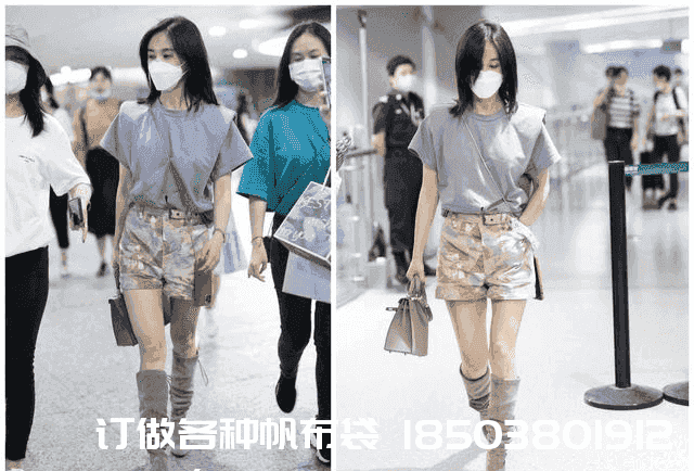 娇小可爱的王子文身穿香芋紫的T恤也是非常清新甜美,卡其色打底的迷彩短裤上带着紫色印花,与帆布袋厂家电话/微信:15838231350上衣色彩相呼应,紫色也显得格外温婉可人。灰色堆堆靴与灰色手提袋也是色彩呼应,整身色系和谐不杂乱,冷色系的造型也显得她非常温婉大气。