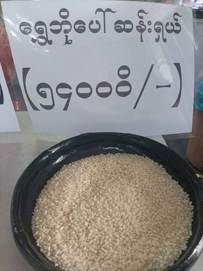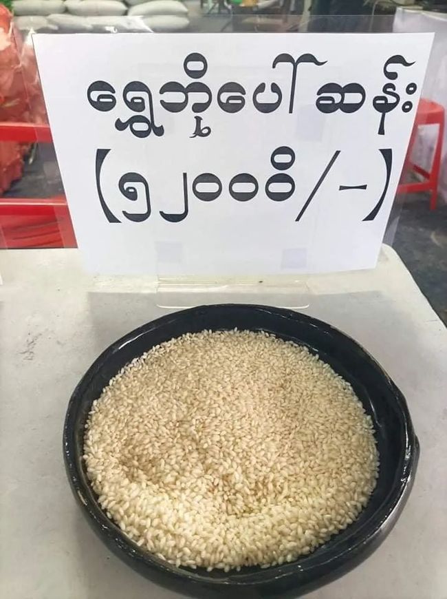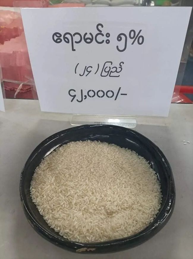 据稻米协会声明中得知,每袋大米的重量为108磅,价格根据品种在24000缅币~缅币之间。一袋瑞保博山大米价格为52000缅币、伊洛瓦底博山大米价格为42000缅币、额亚敏5%大米价格为42000缅币、90天大米价格为27500缅币、额玛特大米价格为24000缅币。