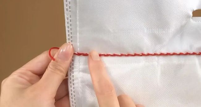找到单双线之后,就应该整理一下这个线头了,因为找到合适的线头轻轻地扯动就可以将这个包装打开,大家要记住一个简短的口诀,那就是“左手单右手双”,简单说就是用右手抓住双线的部分,捏住,左手则是拿住单线的部分,然后左手微微的用力,将这个面袋子的线轻轻地一扯,就可以看到这个线像是弹开一样,从袋子的这头开到了那头,这个包装也就解开了。