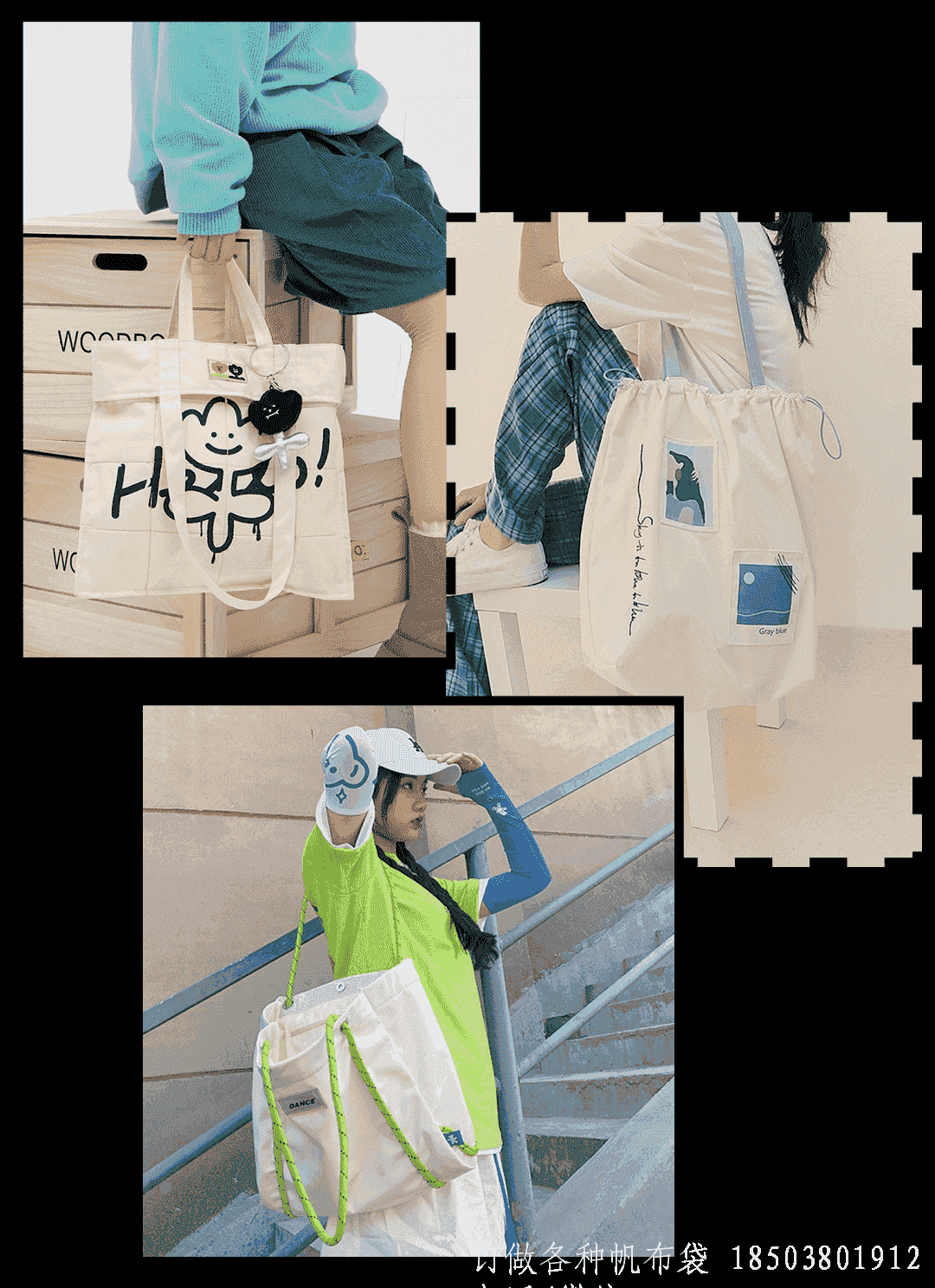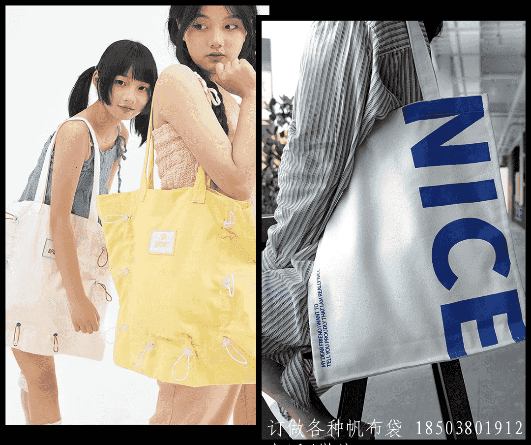 比如不同色系拼接包带、双背带、抽绳等不起眼的设计,让环保袋没那么无聊,也不怕烂大街