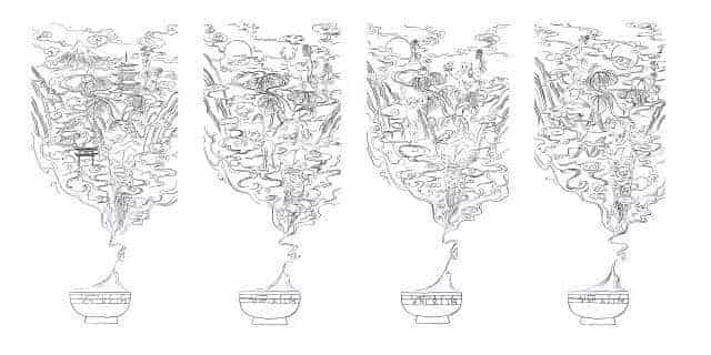 包装风格是浓浓的中式插画风。猴子,麋鹿,塔等富有中国特色的元素被应用到插画中,充满灵气,有种神话传说的味道。