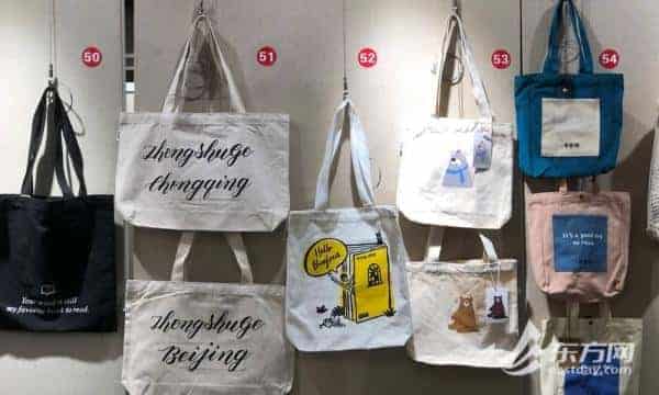 帆布袋结实耐磨、美观耐用,尺寸大多能容纳大16开本多本书,可反复使用。每家书店的帆布袋都有独立主题,譬如上海新华传媒连锁有限公司帆布袋的主题是“阅”希望、“阅”人生,新华传媒南村映雪文化书店的帆布袋主题是日出东方;上海图书有限公司帆布袋的主题是桐阴论画、读书·一辈子;博库书城的帆布袋是书袋熊、书籍;衡山·和集帆布袋的主题是Mix Generation;钟书阁帆布袋种类很多,主题为泰戈尔诗句、名人名言、猫奴日记、好日子、城市字母等。思南书局、朵元书院、上海香港三联书店、现代书店的帆布袋等都印着书店的LOGO。“我们从今年年初下架了一次性塑料袋,有一整面墙二三十款环保袋供读者选择。”参加评选的钟书阁静安芮欧店店长原扬表示,由于书的重量比较重,包袋的材料十分讲究,与普通商场有区别。这次将上海各大书店的特色包袋看个遍,一边看一边学习,了解其他书店的特色。