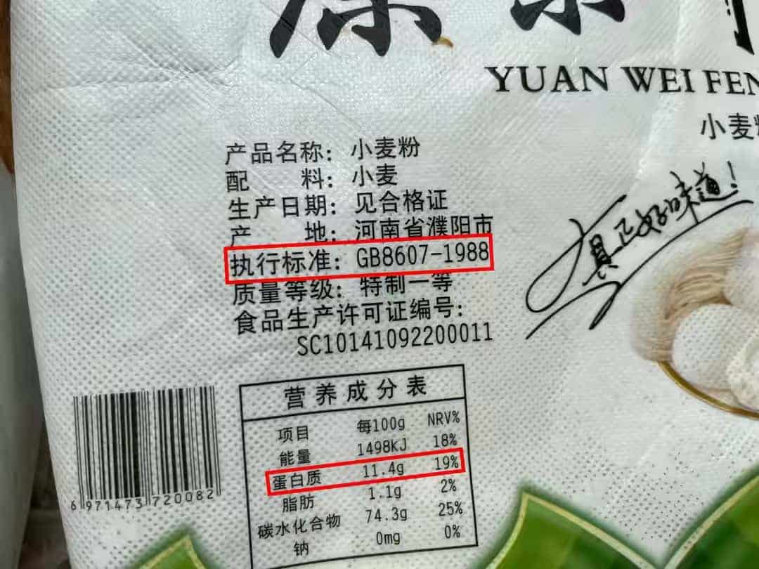 面粉包装袋上的产品标准号即能看出面粉的商品名称,同样也能判断它是否合格。