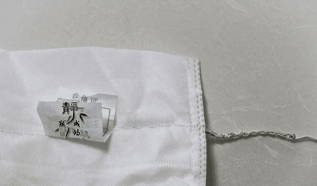 所有的面粉袋和米袋的封口都是一面单线,一面双线。这是一袋面粉,这是它的双线的一面。有的袋子双线更明显,是并排的两行单线,也有这种纠缠在一起的双线。