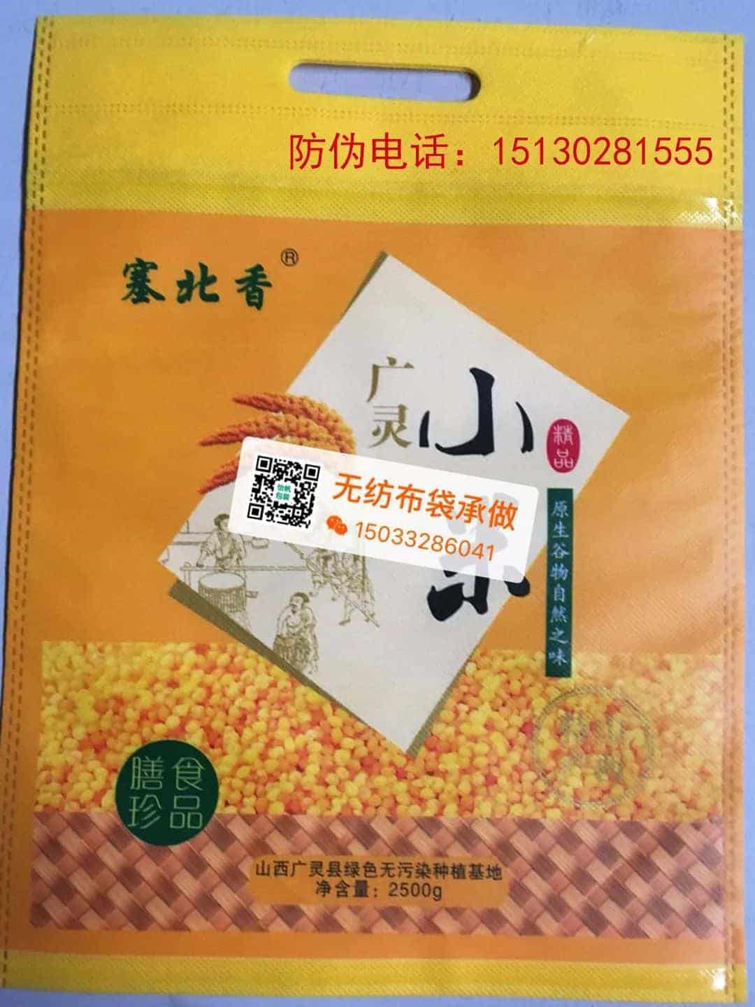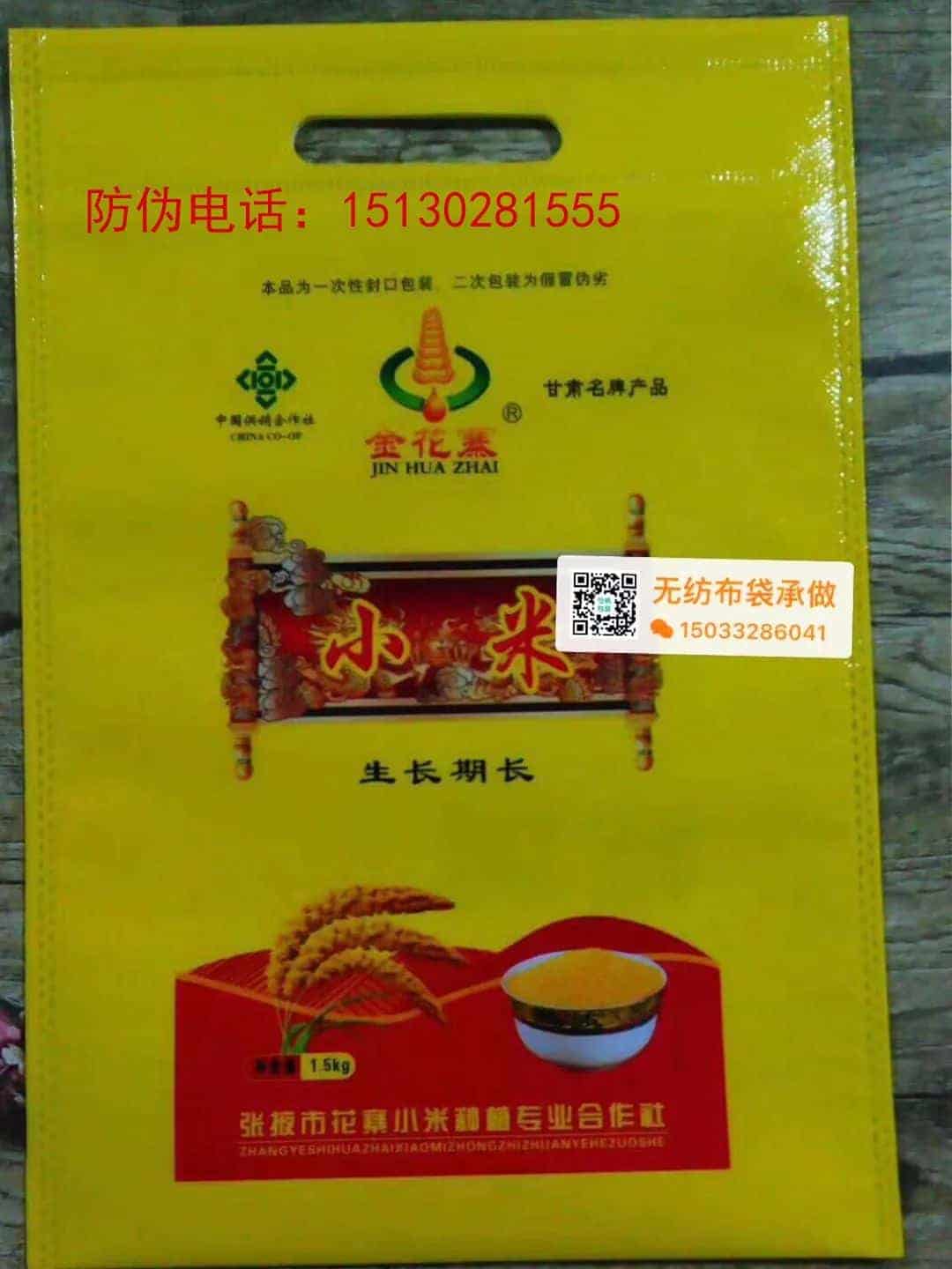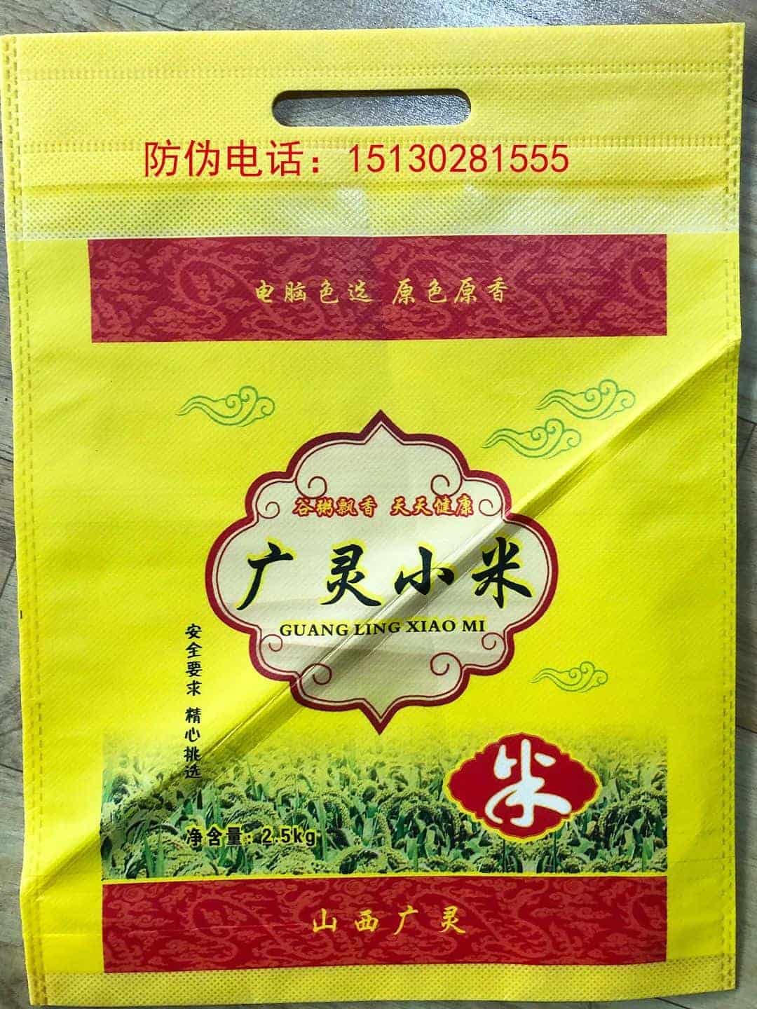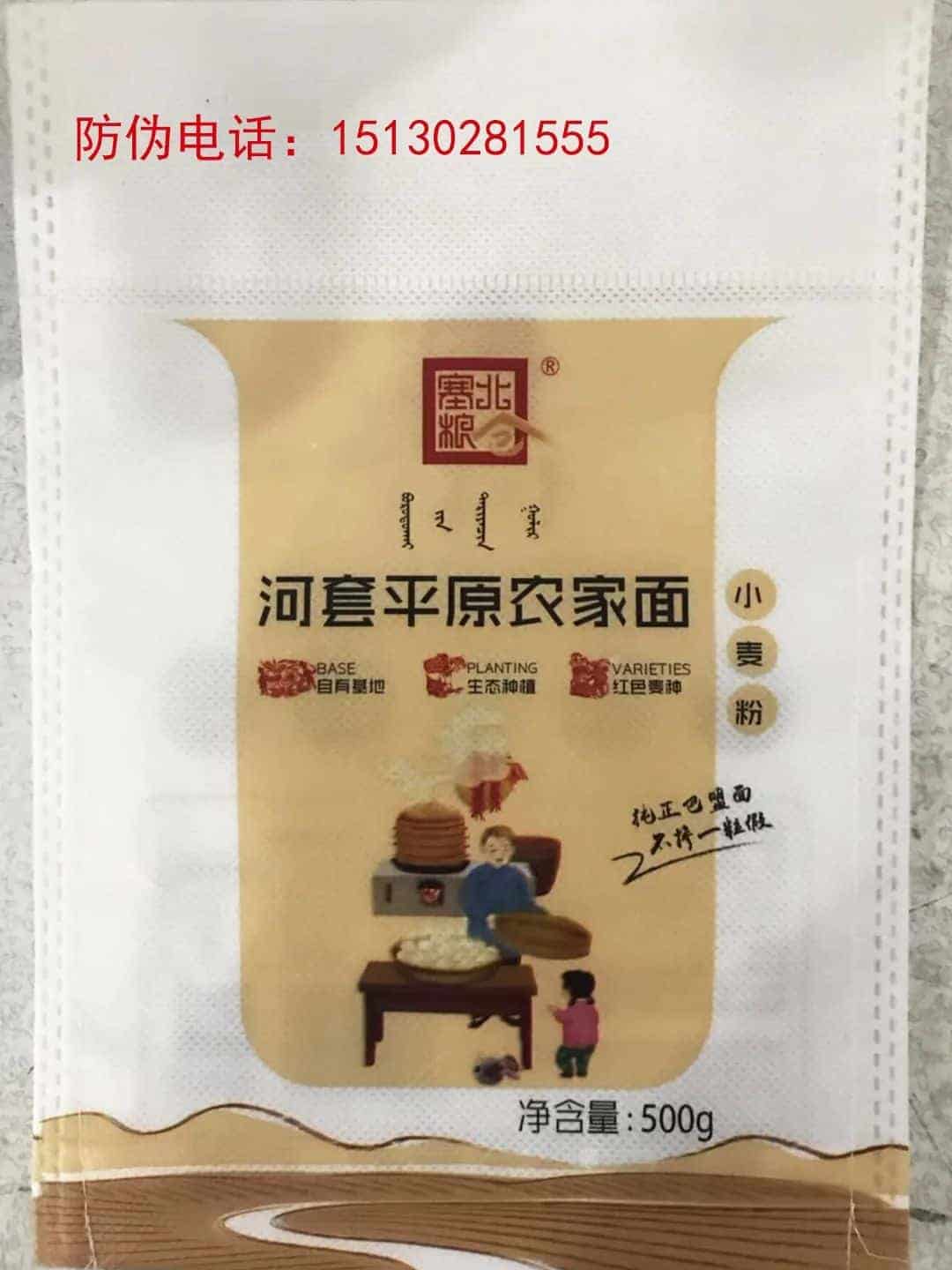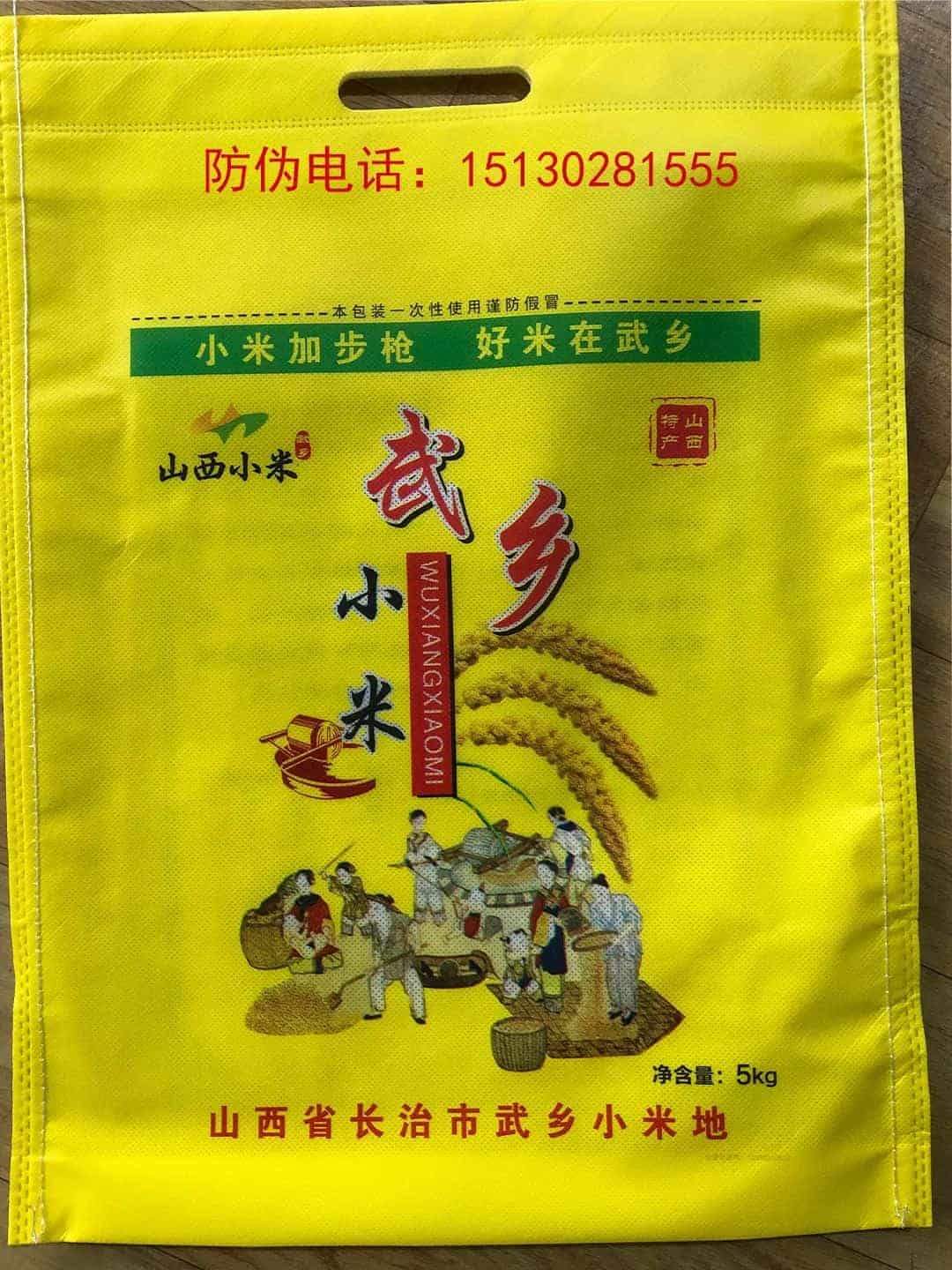 厂家主营产品:无纺布面粉包装袋,无纺布大米包装袋,小米袋,无纺布杂粮袋,无纺布手提袋,无纺布广告袋等无纺布袋系列产品。无纺布面粉袋包装规格有500克,1000克,2.5公斤,3公斤,5公斤,10公斤等,特殊 规格可以来电定做。