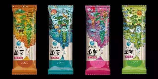 包装风格是浓浓的中式插画风。猴子,麋鹿,塔等富有中国特色的元素被应用到插画中,充满灵气,有种神话传说的味道。