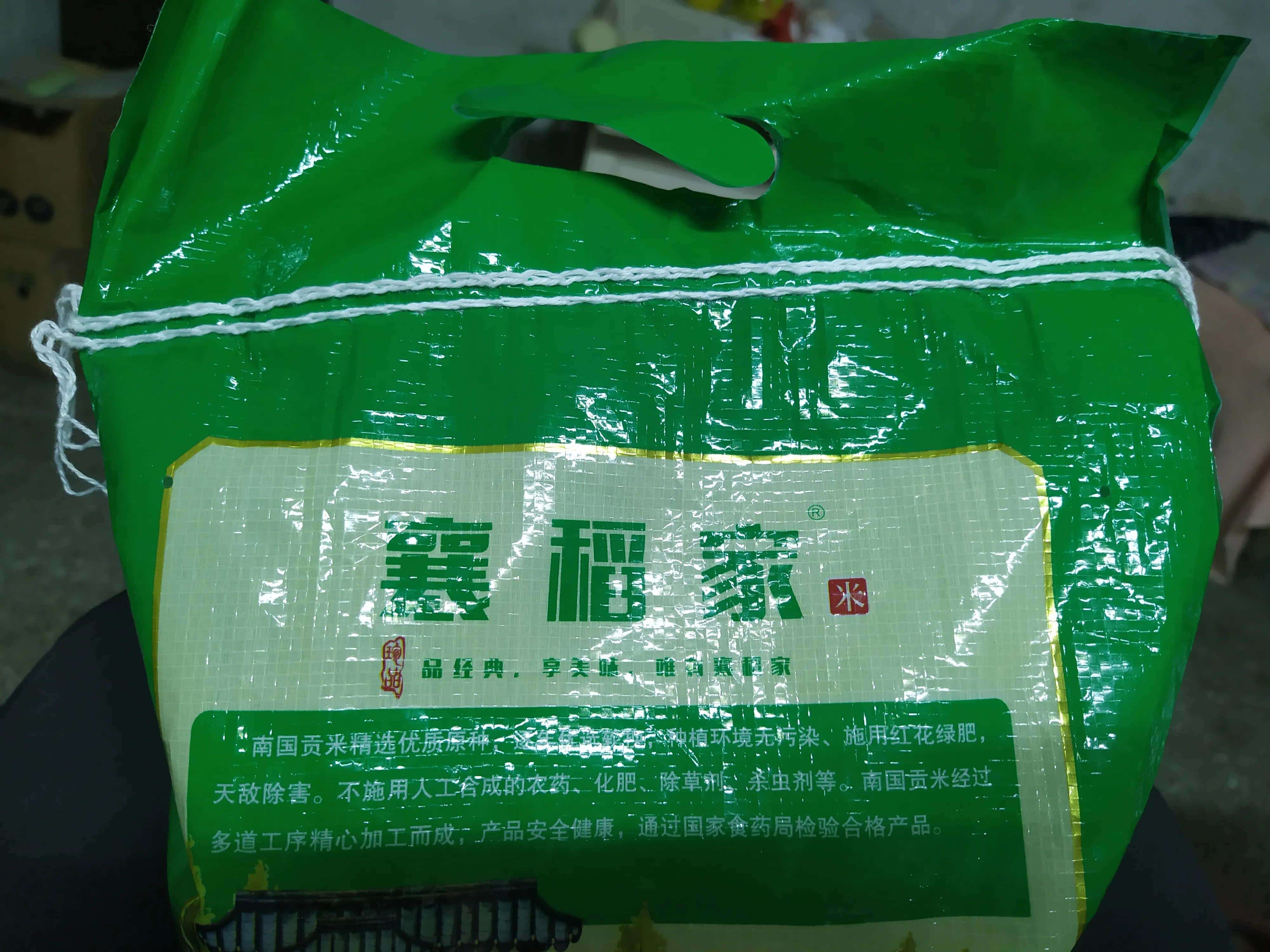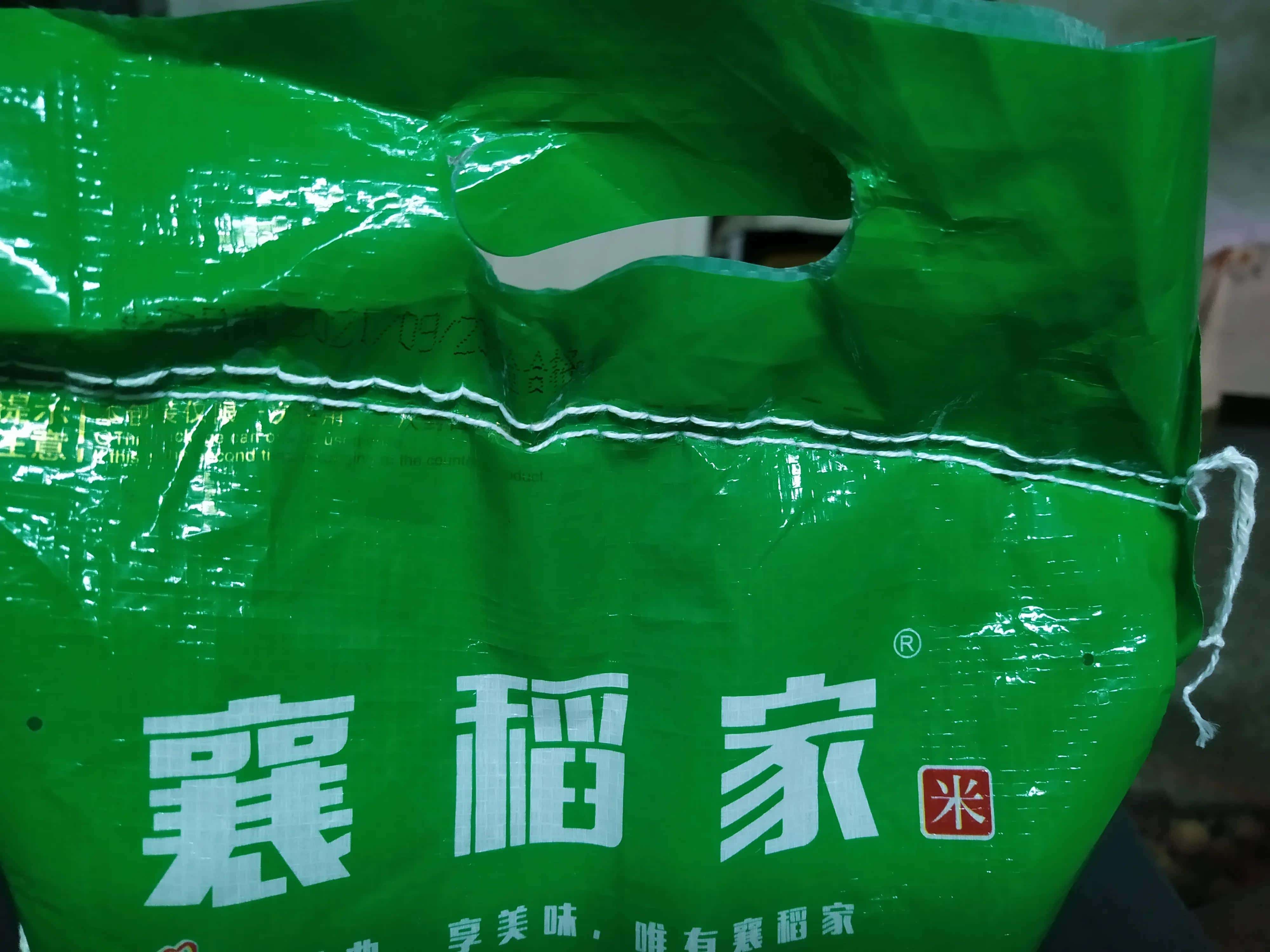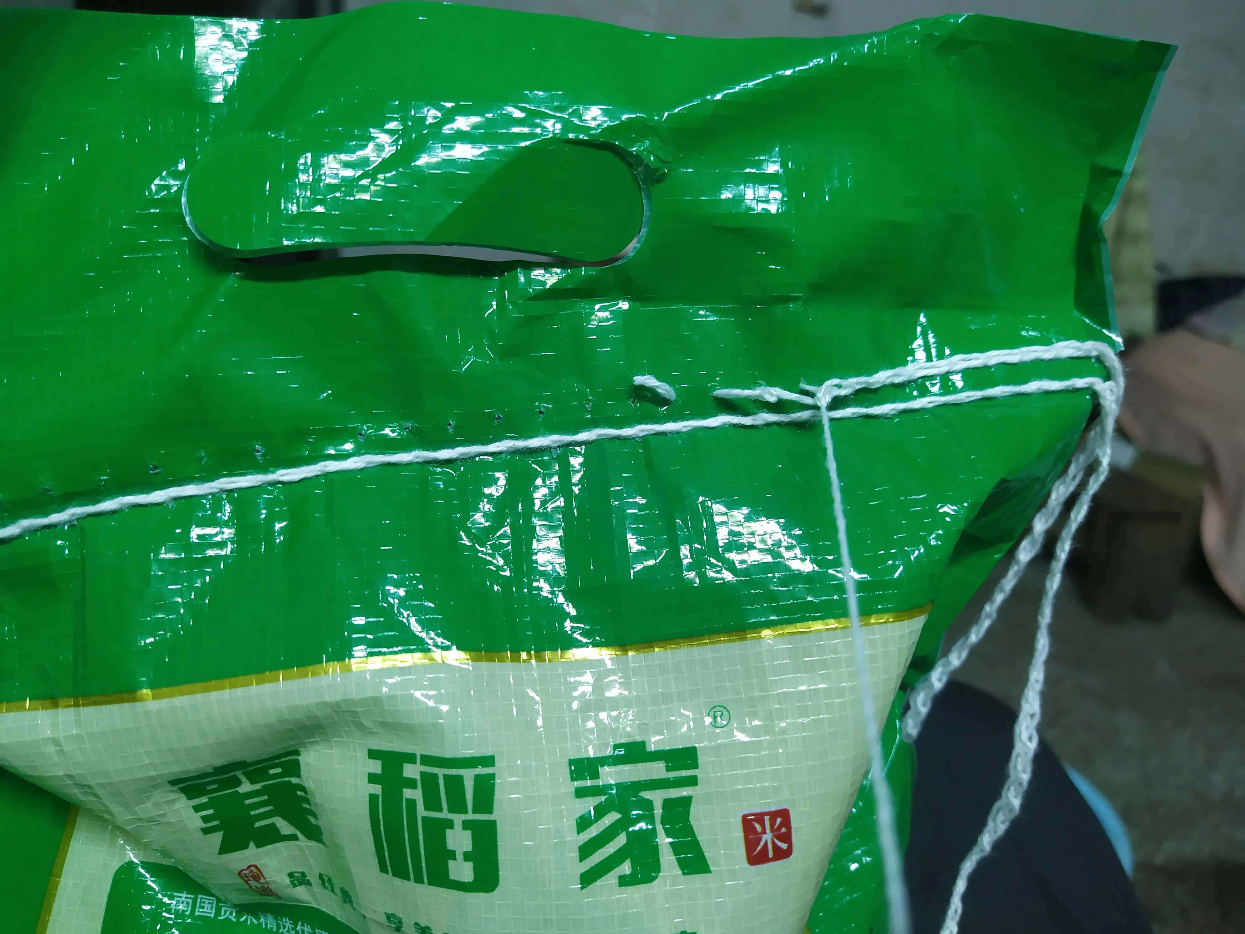 这是一个米袋子有两层封口线,这一面是双线,下一面是单线°