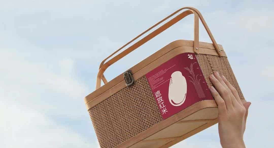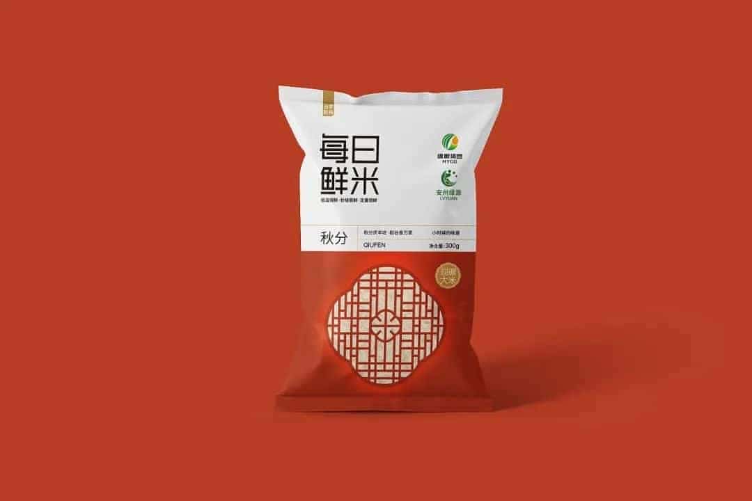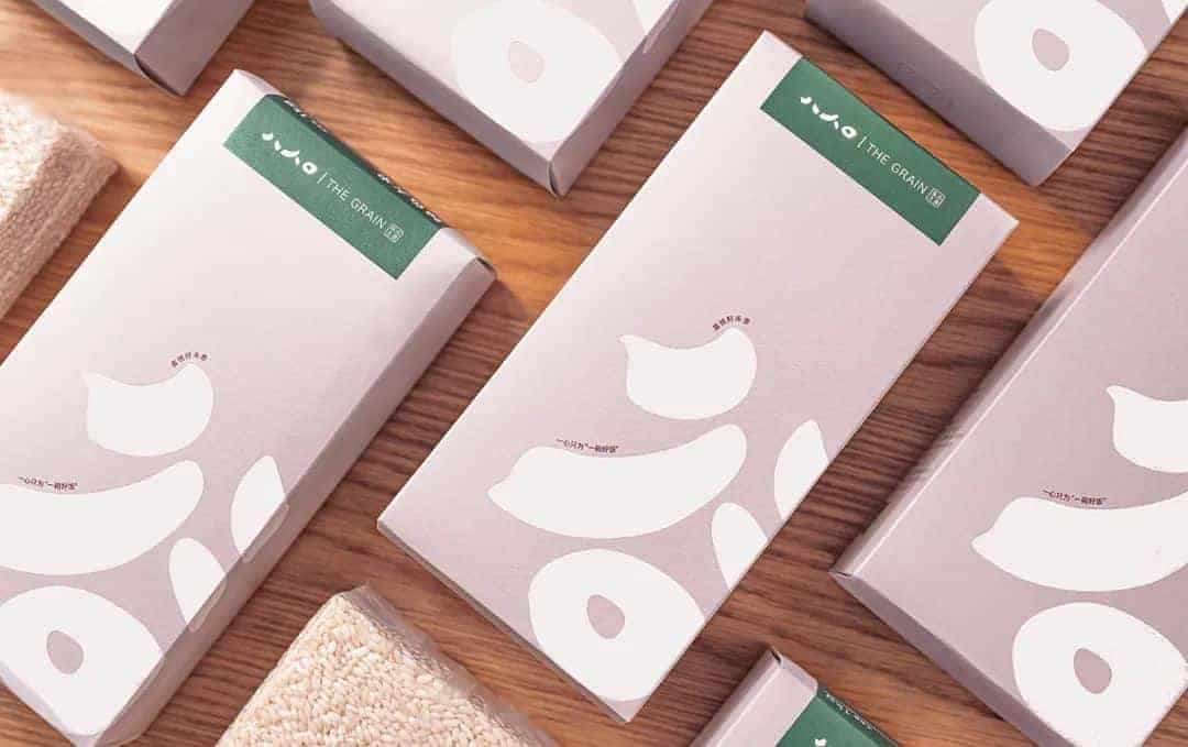 在盒型结构、风格都有所不同的大米包装