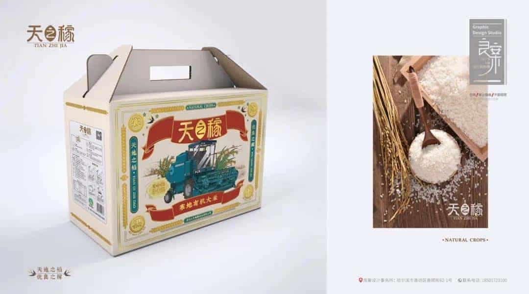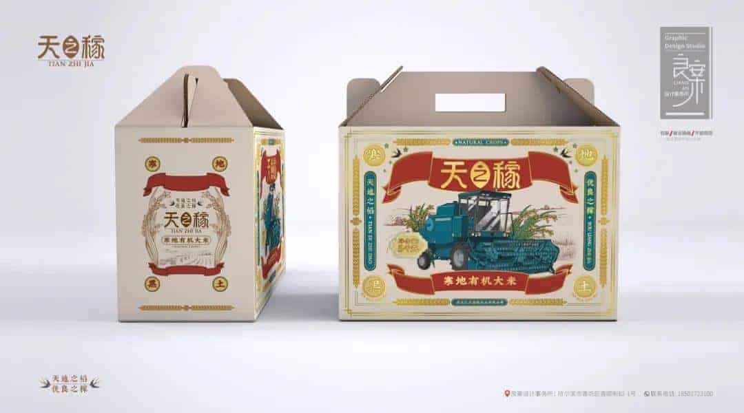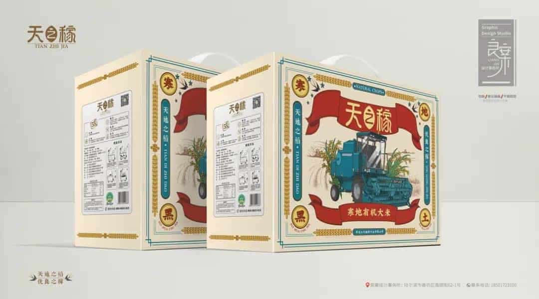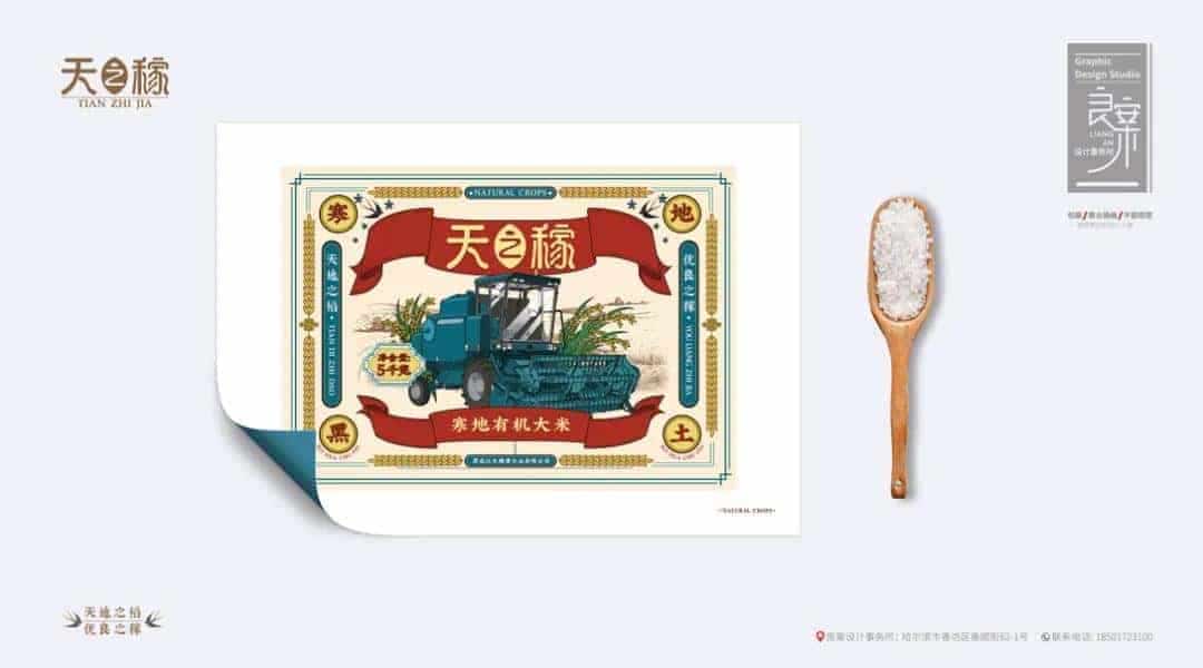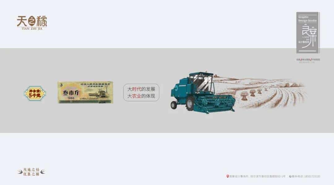 以“粮票”为包装设计灵感,“收割机”和“稻穗”为主要元素,描绘颇具旧时代农业生产特色的画面,唤醒用户的怀旧情怀。