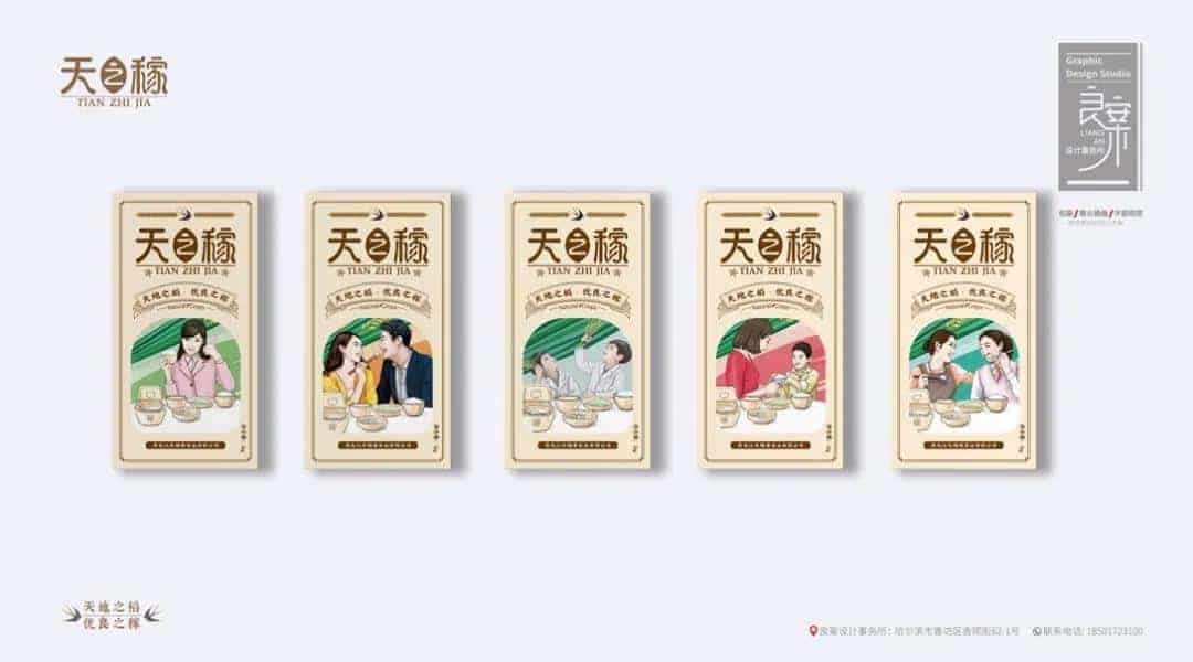 总的来看,以上的大米包装将国潮风插画融入到包装设计中,将真实的画面和情感表现出来去感染消费者。
