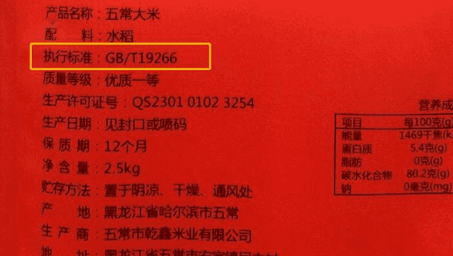 市场上还有一种普通的五常大米,采用的是GB/T 1354,这种品质就不如GB/T19266的,口感差很多。所以不要看到五常大米就是好的,关键要看准它的执行标准,这在包装上会明确地写出来,大家一定要看仔细了。(下面3个也一样)