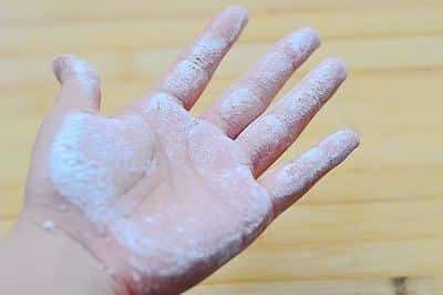 (4)、可以抓起一把面粉感受一下,优质面粉不容易松散开来,劣质的面粉则相反。