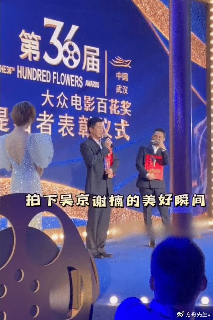 吴京上台拿奖,吴京当场感谢谢楠为这个家的付出,平日里还要辅导孩子上网课,吴京说是妻子撑起了半边天。吴京问这个奖是现在给她还是回家再给,谢楠说“迟早都是我的”,真是神仙爱情,在场的都磕到了,就连张译都忍不住现场拍视频。