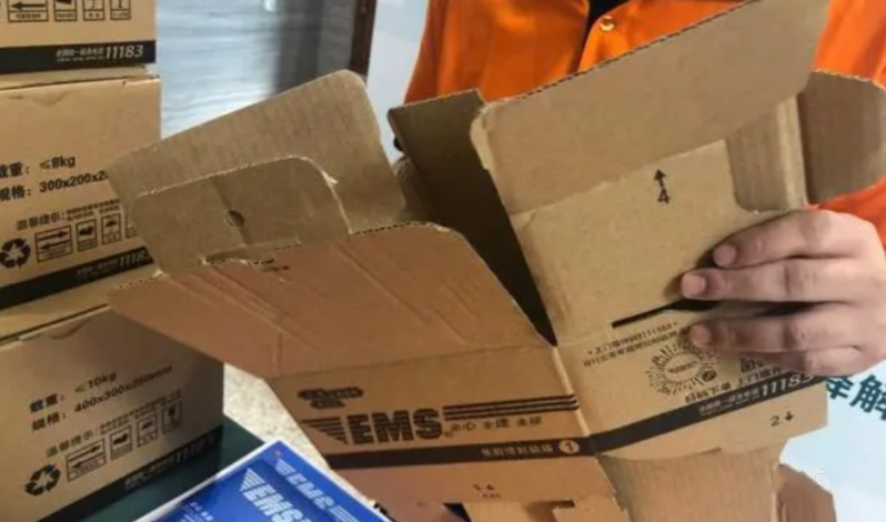 图片邮政免胶带封装箱。王晶摄 图源:央广网