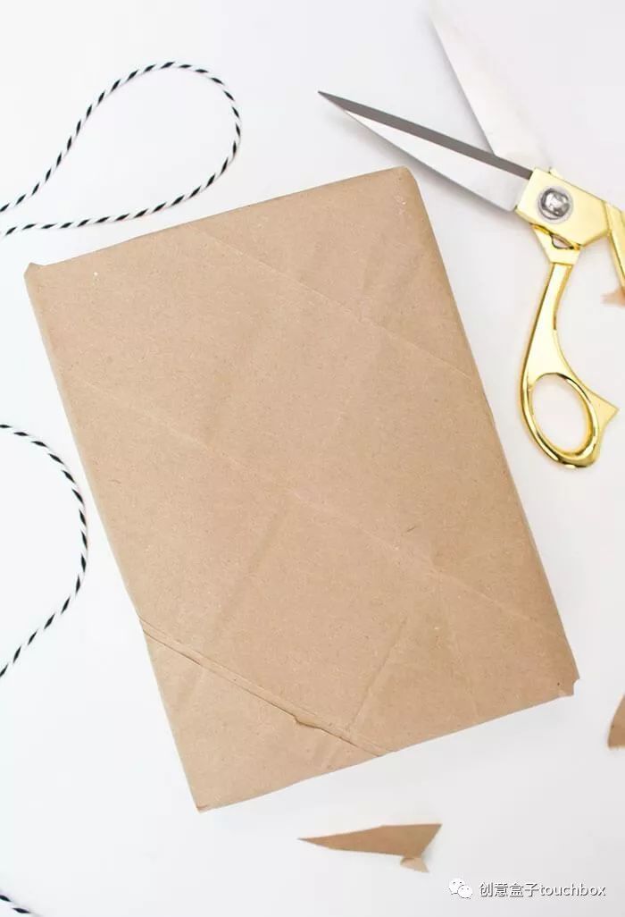 将牛皮纸袋在礼物上包装好后