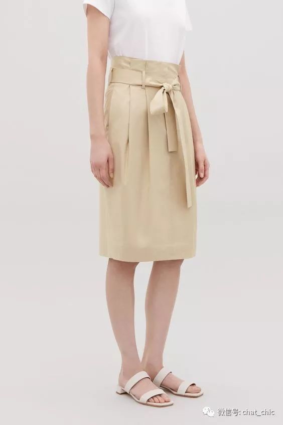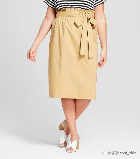 偏直筒形的纸袋裙,