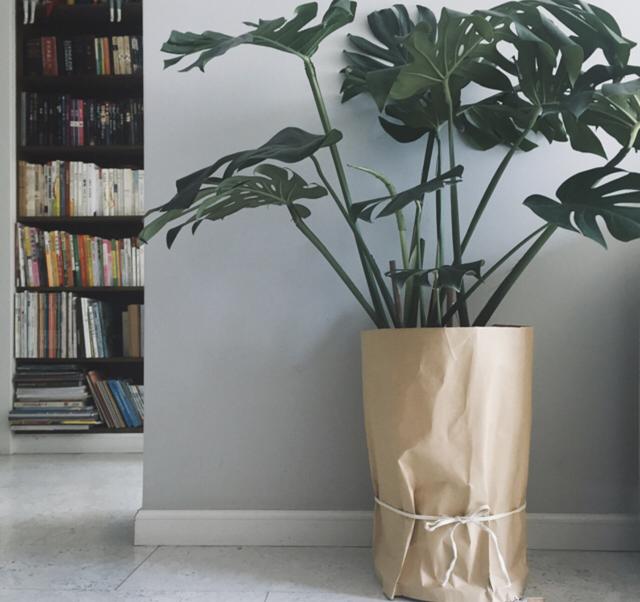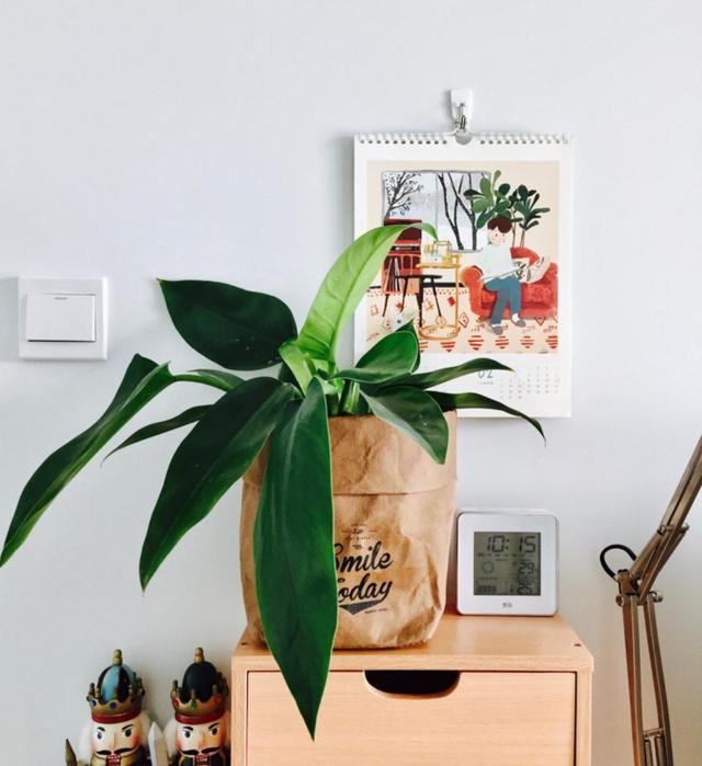 家里大的绿植,花盆不美观,用牛皮纸收纳袋来遮丑,牛皮纸的颜色和绿植也非常搭,让家里有拍杂志的场景感。