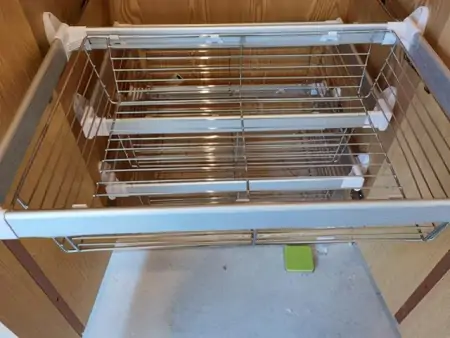 隔板,效果类似于衣柜上的层板。不同的是,这里的隔板是塑料的,固定时不需要打孔。利用隔板,可以把较高的空间切割成多个低矮空间。缺点就是安装起来比较麻烦,固定时间久了会导致柜体变形。临时使用还是不错的