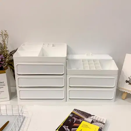 桌面抽屉,适合在衣柜的角落里放小件杂物,比如首饰。唯一缺点就是深度太小的,放在衣柜里只占了深度的一半,浪费很多空间。如果东西多,建议直接买抽屉式整理箱。