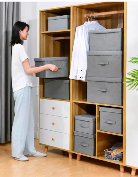 布艺储物箱,和收纳盒类似,只是这个东西更大一点,而且里面没有分小格子。过去人们买这东西应该是为了放被褥的,但是和真空袋相比,这东西真该扔了。
