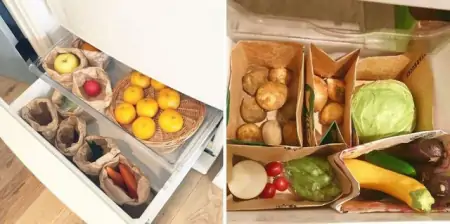 牛皮纸袋,目前最火的收纳产品。牛皮纸袋收纳,也可以做到分类归纳的效果。而且牛皮纸袋有大有小,可以根据不同杂物的尺寸进行选择。缺点就是第一次使用比较麻烦,需要先把袋子的边缘折叠起来。