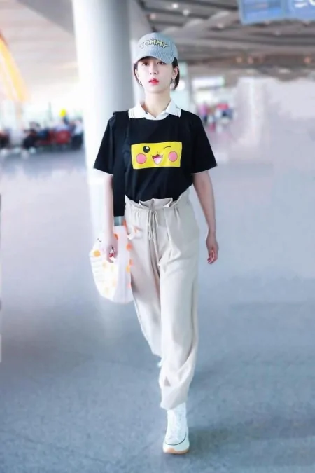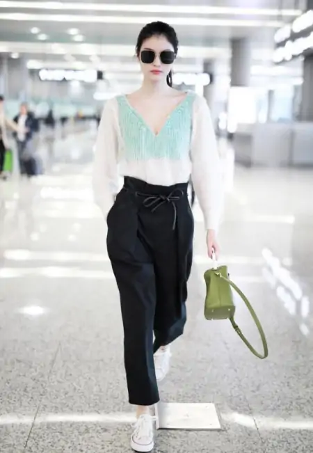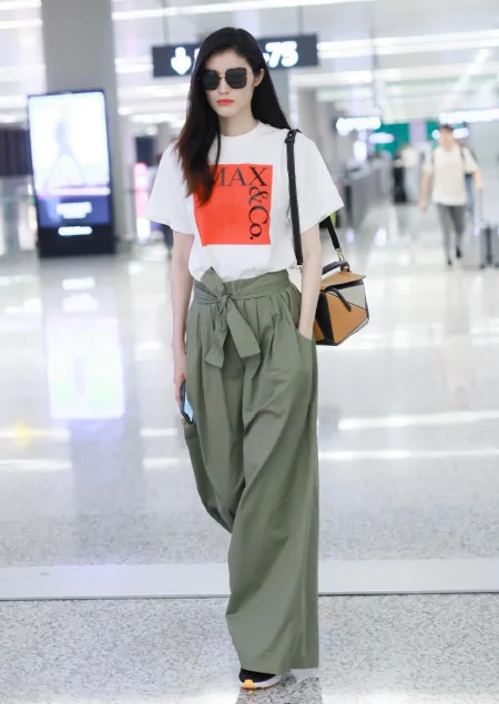 纸袋裤对身材的要求并不高,宽松裤管加上高腰裤身的设计,无论身材胖瘦都能轻松驾驭,如果胯部较大、腿部粗的话,选择一条像何穗这样的纸袋裤,不仅遮肉显瘦,还能瞬间拉高海拔,身高不够也能穿出一双逆天长腿。何穗T恤搭配纸袋裤的造型很好模仿,如果想要让造型更时髦,也可以试试一些设计感更强的款式。