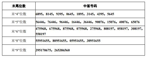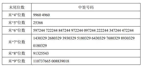 中签号码如下: