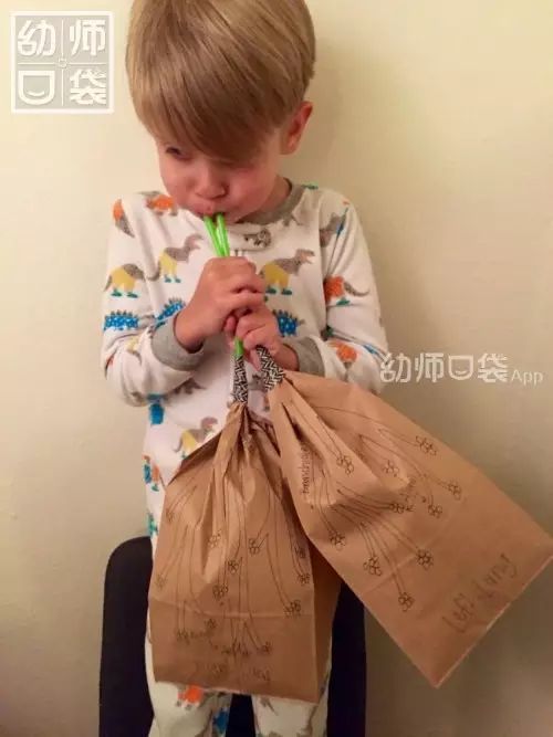 吸管用胶带绑在纸袋上,这样就完成啦!是不是很简单?