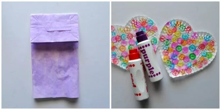 准备材料:纸袋、白胶、剪刀、丙烯颜料、订书机、彩纸等