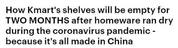 根据《每日邮报》的报道,在新冠疫情引发恐慌性购买后,Kmart部分商品持续短缺,而这一情况或将持续两个月之久。