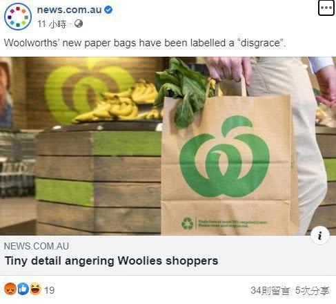 很快地,这款“中国制造”的纸袋却让澳洲购物者怒了。他们纷纷跑到Woolworths的Facebook主页上表达他们对“中国制造”标签的失望之情。