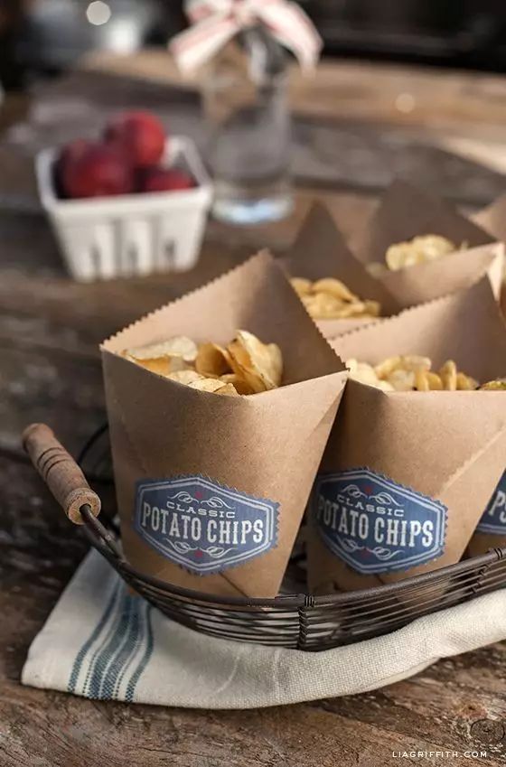 小而薄的牛皮纸可以拿来装食物,贴上一张自制标签,很适合下午茶时光。