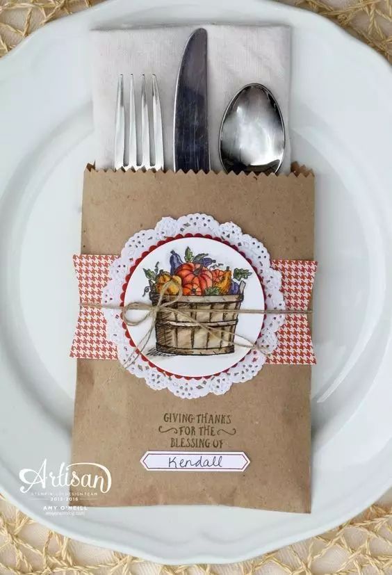 如果遇上吃西餐的排场,可以把牛皮纸用来装餐具。如果每一份餐具上都标上了来客的名字,是不是显得你诚意十足?